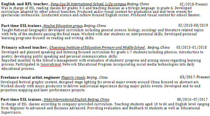 學歷: 本科 期望薪資: 8000-11000(Yuan/M)