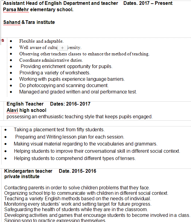 伊朗德黑蘭女 求職線上教學工作 超過五年的教學經驗 曾教過幼兒園、小學、高中 |