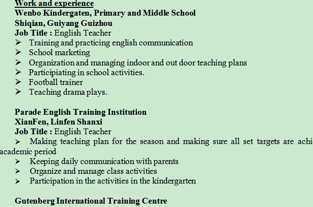 國籍: 其他 求職意向: 教師