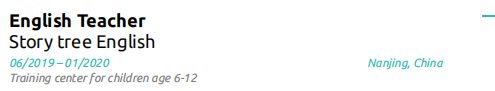 有教學(xué)經(jīng)驗(yàn),有親和力,口音好,流利掌握多種語言,有tefl,已經(jīng)離職,可隨時(shí)上崗,求職任何城市。 |