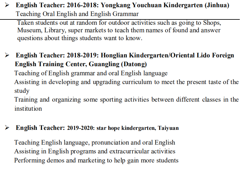 國(guó)籍: 肯尼亞 求職意向: 教師