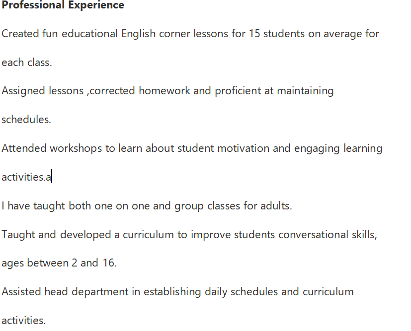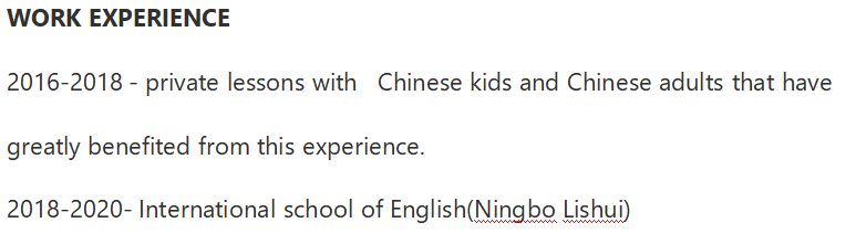 教學(xué)經(jīng)驗(yàn)豐富,能力強(qiáng),口音好,有親和力,正在學(xué)習(xí)TEFL ,盡快上崗 |