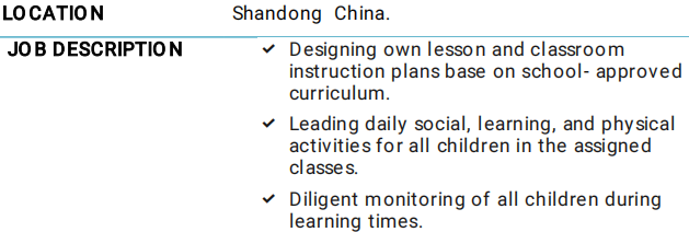 國籍: 加納 求職意向: 教師