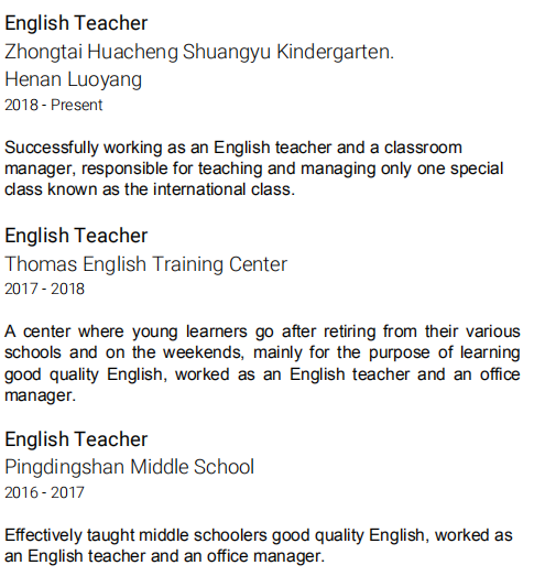 國(guó)籍: 美國(guó) 求職意向: 教師