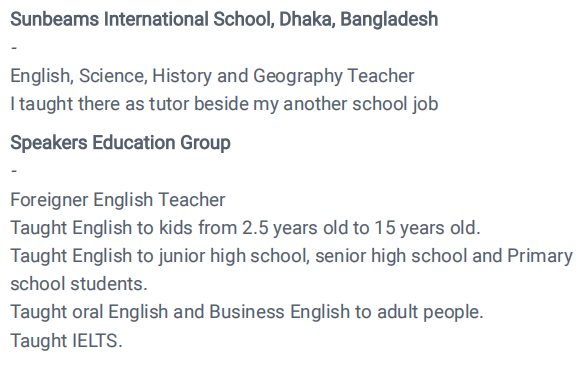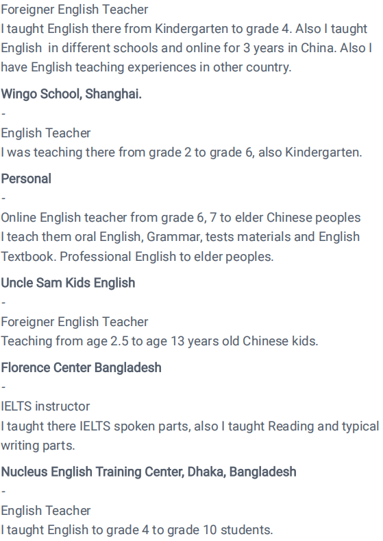 國籍: 其他 求職意向: 教師