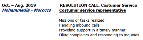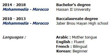 國籍: 摩洛哥 求職意向: 教師