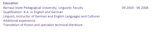 國(guó)籍: 俄羅斯 求職意向: 教師