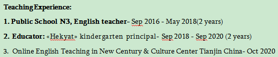 國(guó)籍: 俄羅斯 求職意向: 教師