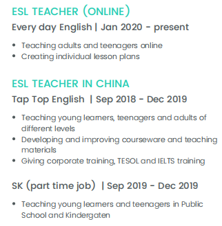 國籍: 英國 求職意向: 教師