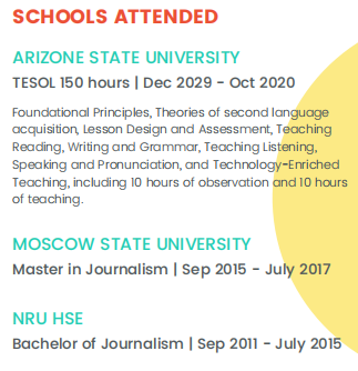 國籍: 俄羅斯 求職意向: 教師
