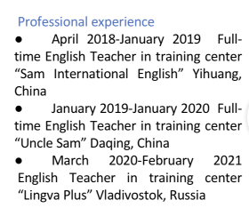 國籍: 俄羅斯 求職意向: 教師