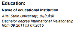 國籍: 俄羅斯 求職意向: 教師