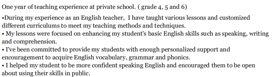 外教的工作經(jīng)歷