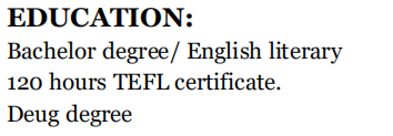 國籍: 摩洛哥       求職意向: 教師
