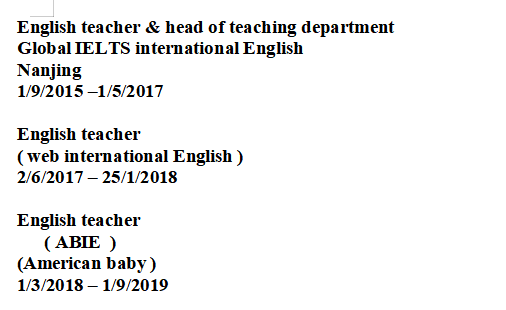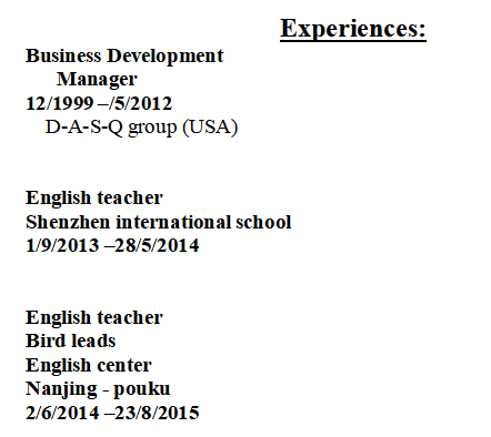 Santino,意大利,現(xiàn)居南京,結(jié)婚簽,有TESOL ,9年教學(xué)經(jīng)驗(yàn),23k,求職深圳上海,不去北京廣州,其他好點(diǎn)的城市也可以,想去幼兒園小學(xué)大學(xué),加利福尼亞大學(xué)MBA ,在美國學(xué)習(xí)工作了19年 |