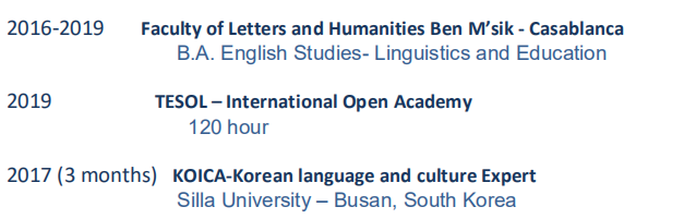 國(guó)籍: 摩洛哥 求職意向: 教師