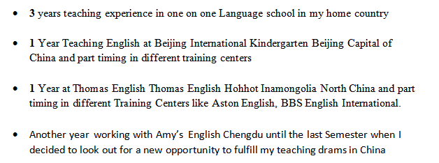 南非,現(xiàn)居成都,城市不限至少14k,學(xué)生簽,有TEFL ,教育學(xué)本科,5年教學(xué)經(jīng)驗(yàn),工簽資料齊全,離職 |