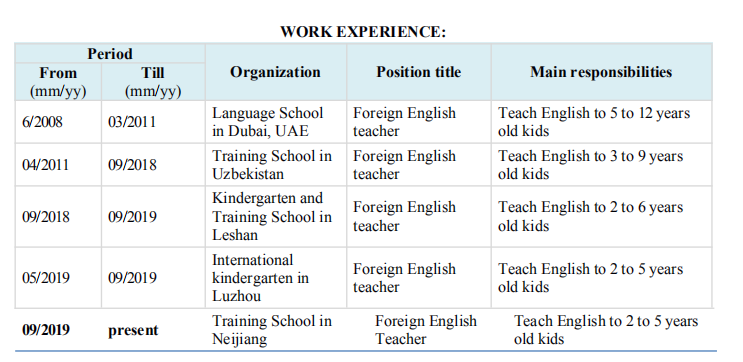 國(guó)籍: 俄羅斯 求職意向: 教師