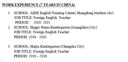 美國加納混血,護(hù)照加納,現(xiàn)居 濱州,求職深圳廣州杭州上海 求職幼兒園,其他城市也可以,17-18k,本科,TESOL ,8年教學(xué)經(jīng)驗(yàn),工簽,口音不錯(cuò), |