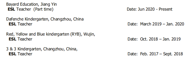 國籍: 其他 求職意向: 教師