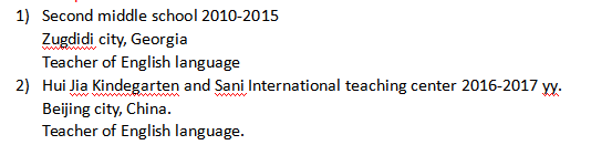 國(guó)籍: 白俄羅斯 求職意向: 教師