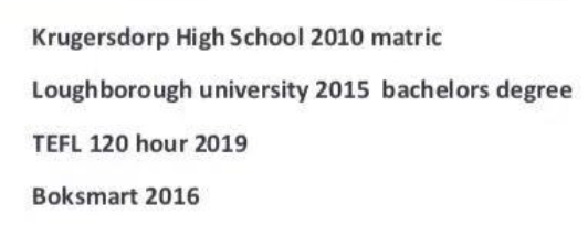 國(guó)籍: 南非 求職意向: 教師