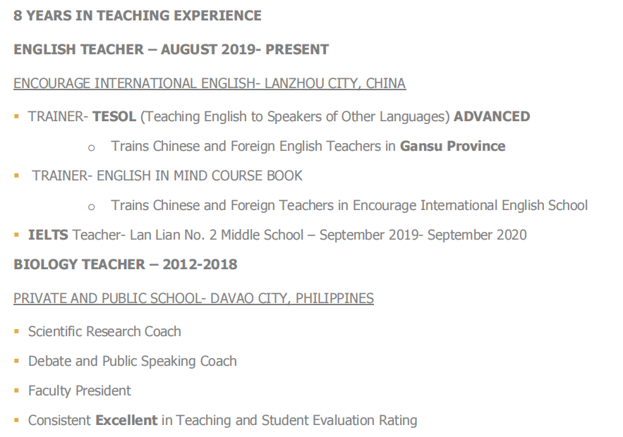 Michael 菲律賓,現(xiàn)居蘭州,博士,碩士生物學(xué)科教學(xué),TESOL 培訓(xùn)老師,20K+住宿,2年經(jīng)驗(yàn),求職城市不限,,學(xué)校類型不限,文教簽轉(zhuǎn) 8 月份上崗,口音很棒 |