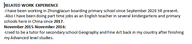 國(guó)籍: 其他 求職意向: 教師