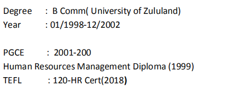 國(guó)籍: 其他 求職意向: 教師