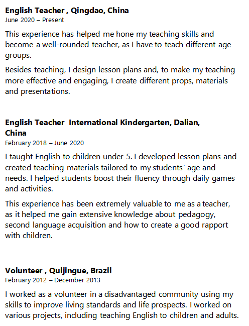 國籍: 其他 求職意向: 教師
