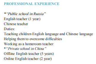 國(guó)籍: 俄羅斯 求職意向: 教師