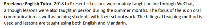 國籍: 其他 求職意向: 教師