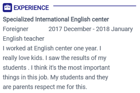 烏茲別克斯坦,現(xiàn)居南京,找南京培訓(xùn),4月6號可上崗,1年經(jīng)驗(yàn),本科在讀學(xué)生簽,口音可以,12-15k, |