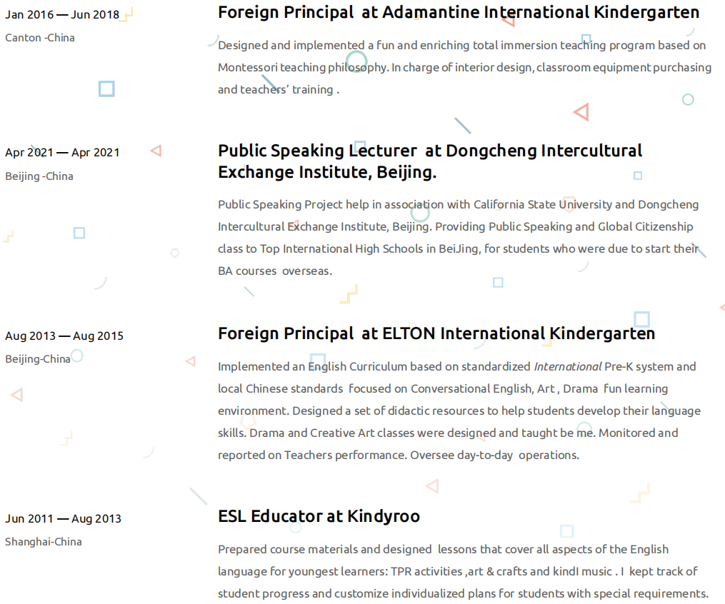 國籍: 摩洛哥 求職意向: 教師