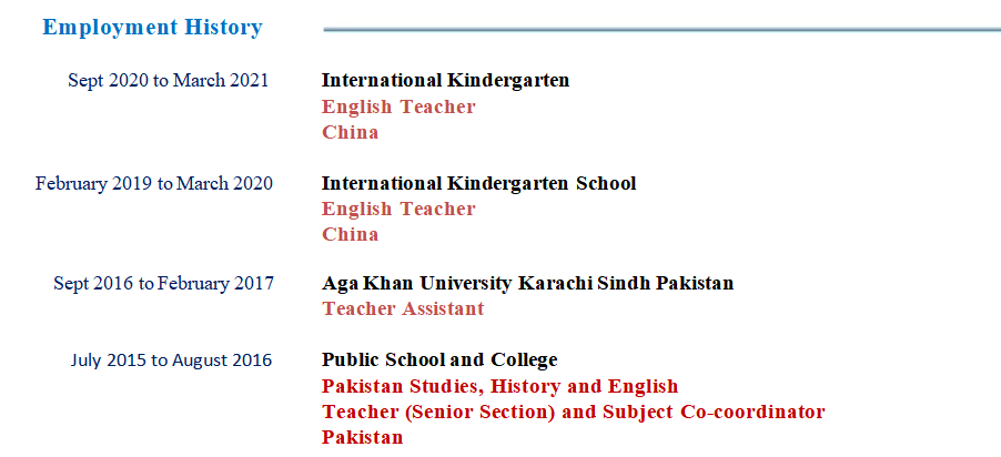國(guó)籍: 摩洛哥 求職意向: 教師
