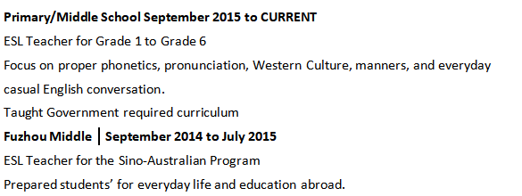 加拿大,現(xiàn)居佛山,英語和教育專業(yè)碩士學(xué)位,TESOL,7年經(jīng)驗(yàn),找國際學(xué)校和雙語學(xué)校,稅后25k,有個(gè)3歲的兒子,想讓兒子一起入校學(xué)習(xí),找1線2線城市,接受其他城市,文教簽轉(zhuǎn)聘,9月1號(hào)上崗,口音很正,成熟穩(wěn)重型 |
