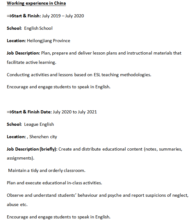 國(guó)籍: 巴基斯坦 求職意向: 教師