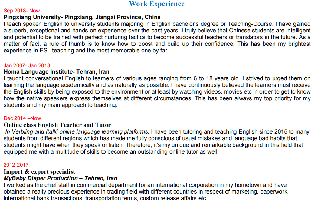 伊朗,目前國外。本科-英語翻譯,在萍鄉(xiāng)學院工作過,求職中學到大學職位 ,需要pu入境 |