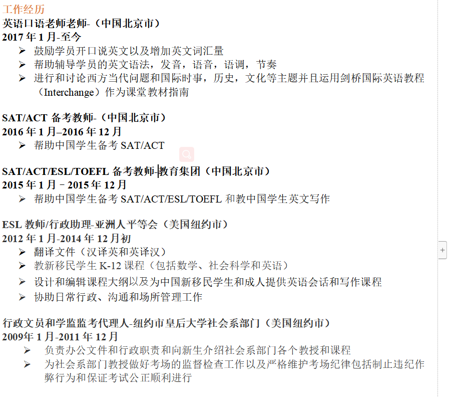 國籍: 其他 求職意向: 教師