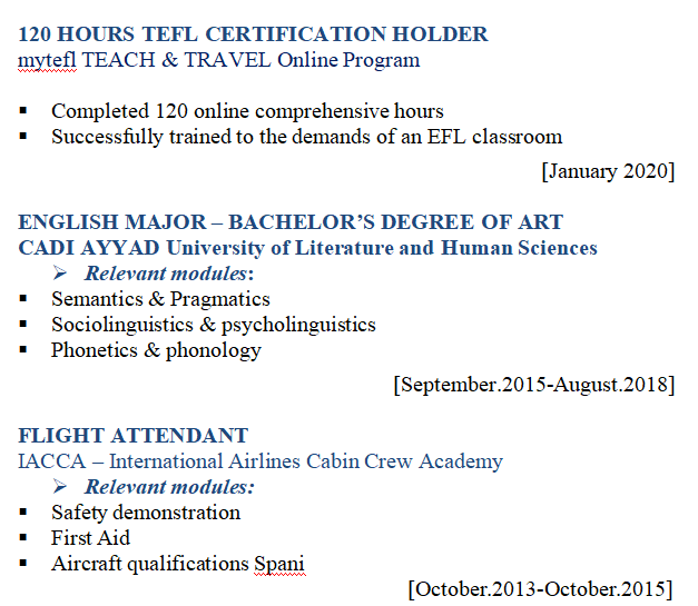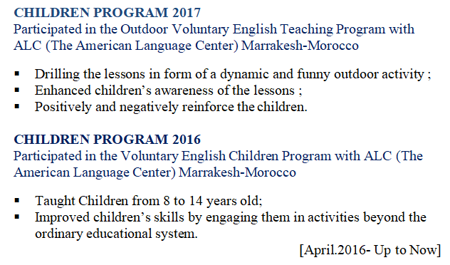國(guó)籍: 摩洛哥 求職意向: 教師