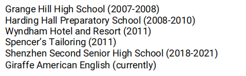 國(guó)籍: 美國(guó) 求職意向: 教師