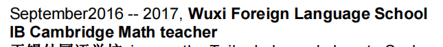 澳大利亞臥龍崗大學(xué)數(shù)學(xué)本科,碩士為語言學(xué),數(shù)學(xué)老師教學(xué)簽,可以教PYP,IG, A-level GAC和AP以及英語,城市不限,英語不要培訓(xùn)學(xué)校和幼兒園,尋找下學(xué)期職位。 |