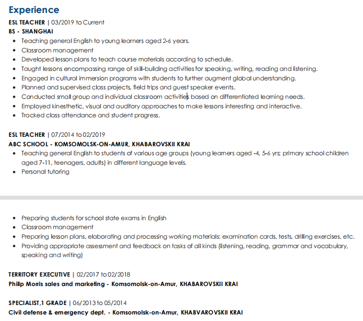 國籍: 俄羅斯 求職意向: 教師