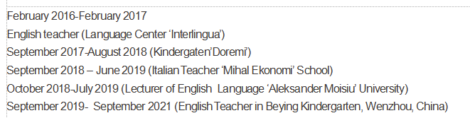 阿爾巴尼亞,目前在溫州,教育翻譯碩士,TESOL,2年經(jīng)驗(yàn),找杭州上海幼兒園小學(xué),體育老師簽證9月到期,9月到崗,20k |