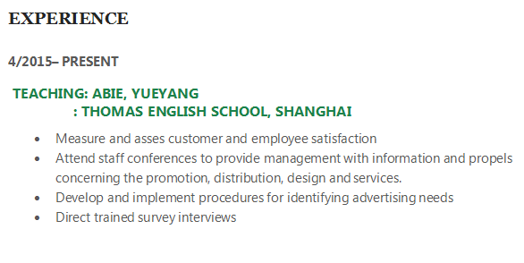 國籍: 南非 求職意向: 教師