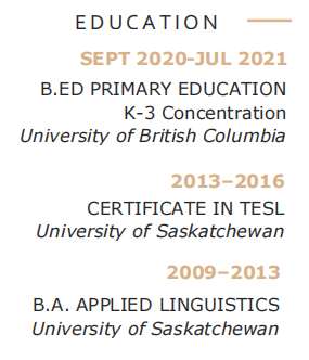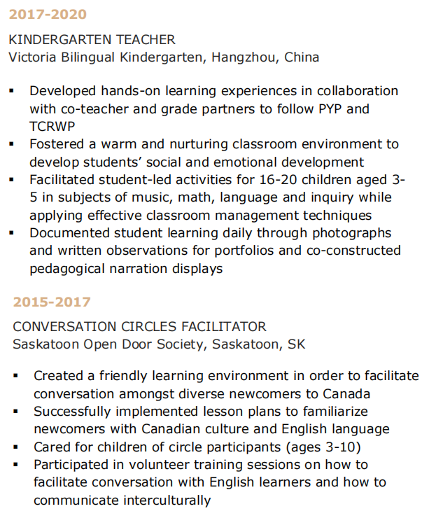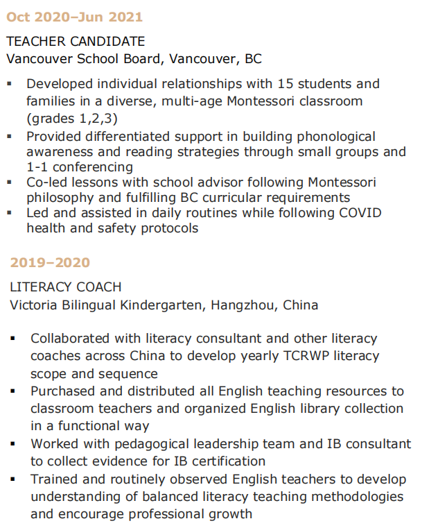 29 歲,加拿大,目前在溫哥華,教育專業(yè)和英語(yǔ)專業(yè)雙學(xué)士學(xué)位,TESOL,3年IB PYP 幼兒園經(jīng)驗(yàn),求職廈門杭州寧波或其他城市,曾在中國(guó)任教并持有工簽,30k, 盡量在8月9月上崗 |