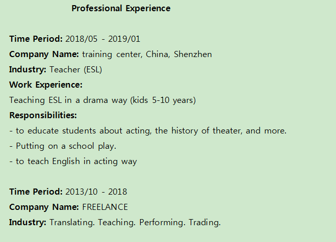 國籍: 美國 求職意向: 教師