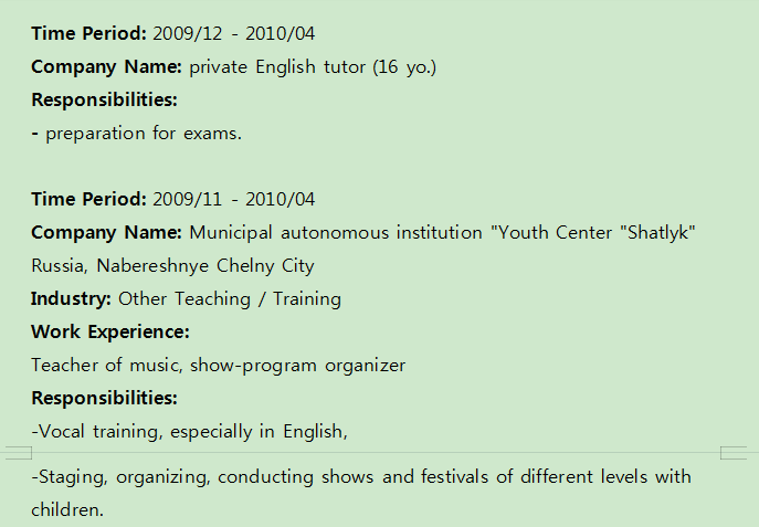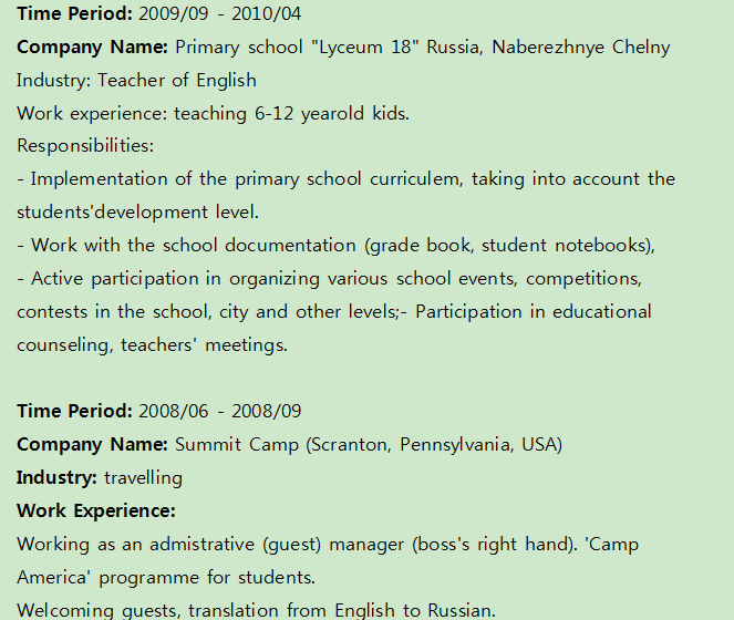 Alena+俄羅斯女+英語教師專業(yè)本科,tsol,新聞專業(yè)碩士+求職上?;蛘呱钲诨蚩梢韵染W(wǎng)上兼職+本國,需要PU到崗---之前在中國有教學(xué)經(jīng)歷,發(fā)音不錯 |
