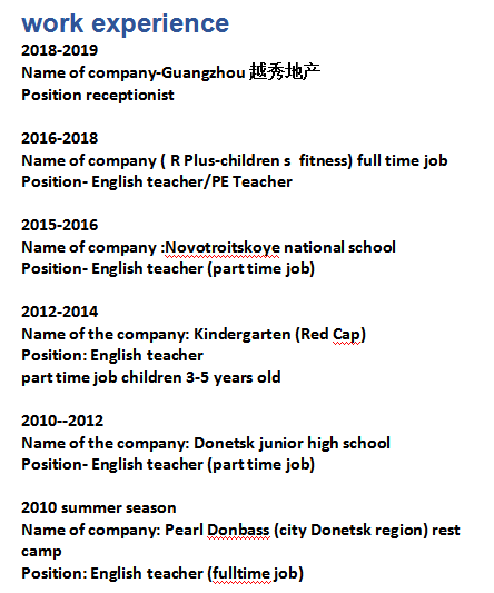 國籍: 烏克蘭 求職意向: 教師