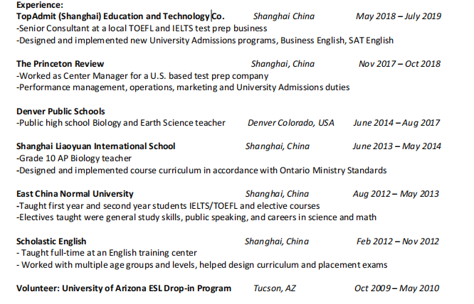 學歷: ???       期望薪資: 3000-4000(Yuan/M)